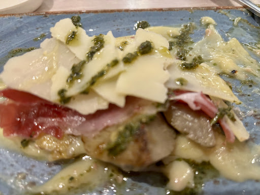 My suckling pig was delicious with great chips and pedron peppers, my mother's pork chops was pulled pork which was nice but cold , her baked potato was also cold and when we asked about it they took the potato away the server came back with a hot plate with the potato on it, clearly microwaved. Plonks the plate in the table and leaves , you'd think they'd take the main table away and re plate the meal with the "new potato"
