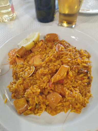 Driven past many times and wondered why people would choose to eat on an industrial estate! However, when the three places I would usually go to in Palmones were shut, I looked at the reviews for Las Salinas and thought I'd give it a go. It seems very popular, but we were shown to a table where a menu del dia showed a very good choice of dishes, either meaty, fishy or even veggie for €13.50 including bread, drink and postre. Portions were big. Highlights for me were the seafood rice starter and the pudin for dessert.