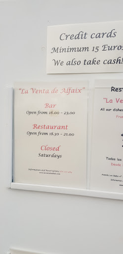 Read moreStaying at next door HPB property el pueblito de Alfaix, we called into La Venta for a drink, intending to order pasta and a pizza. We had been in the previous night and seen people eating them at a table outside, and thought they looked OK. After the initial drink, we went to the bar to order, but were told by the manageress(?) that it was "not their policy" to serve food outside. We pointed out that we had seen people doing just that the night before, but her response was that they were fully booked, and it was the worst time to ask for food. Admittedly it was Saturday night - but there were very few people in the restaurant, and it was only 7.30 (comparatively early for eating in Spain)! Apart from that - they advertise that they do takeaways, so presumably we could have ordered something to take away at any time?...