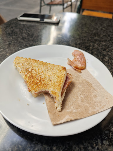 Ik weet niet wat er tussen de tosti zat, maar de 'kaas' hebben we aan de vogels gegeven. Als je wilt weten hoe je een koffie met melk kunt verpesten, dan moet je naar deze kiosk. Het was meer melk en een heel klein beetje koffie. Ook in het verpesten van de cappuccino is deze kiosk zeer goed. We hebben de consumpties laten staan.