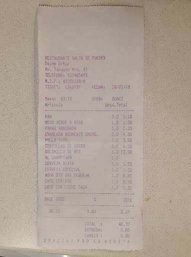 Read moreEl restaurante lo eligió mi pareja cuando volvíamos de un gran día de caminatas y de ver esta preciosa isla de La Palma. Sin embargo esta ha sido de las peores cenas de mi vida adulta. Dado que tienen en el restaurante una gran parilla, decidimos pedir carne los dos, ella un secreto ibérico y yo un entrecot ( algo que no suele fallar). Hasta allí bien. Sentados delante de la parilla en la zona de comedor pudimos ver al cocinero preparar la carne con la mascarilla bajada mientras vacilaba con las camareras (también con la máscara bajada) y con bastante poca higiene al parecer. A pesar de que estábamos lejos, la cocina parecía sucia y digna de una visita del Chicote.. la preparación de la comida sin guantes y al final el cocinero se salía de la cocina a servir los platos ya que las camareras estarían ocupadas echándose las risas en la cocina. Todo lo anterior no es realmente lo más importante pero sólo decir que el entrecot no era fresco, sino descongelado, el secreto daba pena, la batata frita que habíamos pedido para acompañar no llegó a tiempo para comerlo con la carne y que el pollo al horno que servía el cocinero venía de una cacerola ya media hecha y que el amigo echaba a la veas como pollo fresco. Le he dado una estrella por que no me deja ponerle menos. Un asco de sitio y lo digo porque me daba mucha pena ver a gente mayor llegar para comerse esa basura. Que conste que no me gusta dejar malas reseñas para nadie, solo intento decir la verdad para que ellos vayan mejorando el servicio, la higiene y la calidad de lo que...