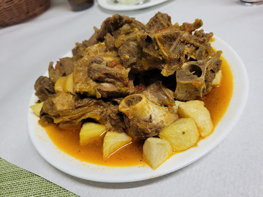 Typical Canary Islands guachinche featuring short but traditional menu. The restaurant is located conveniently right on the main road. The interior is simple but OK. The staff was nice. The disappointment came on the plates. We had carne de cabra (goat meat), carne fiesta (fried pork), eggs and potatoes and chickpeas. The pork was tough and tasteless, goat meat was actually bones covered with a tiny bit of meat and lot of fat and tendons, it was layed over fried potatoes and sunk in very watery sauce. Literally the worst carne de cabra we've tried so far in Tenerife. :( The surprise was the grandmother's cake served as a dessert. We liked it very much. I don't think we'll ever...