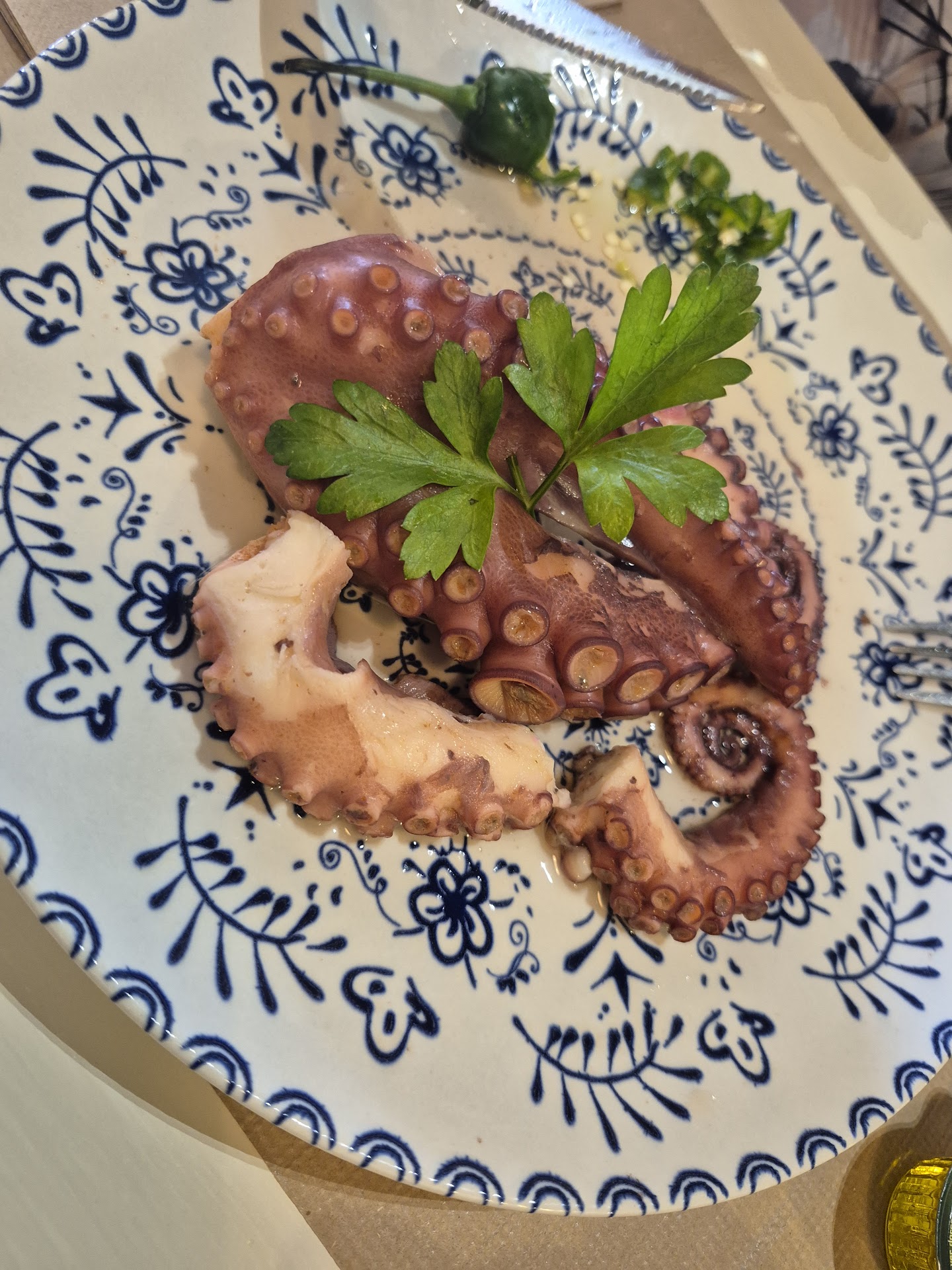 Ensaladilla de Batata y Pulpo, non me la aspettavo così. Mi aspettavo un insalata di polpo e patate tipica, ma in questa versione mi ha stupito e mi è davvero piaciuta. Pezzettini di polpo, patate buone, crostini di pane buoni.