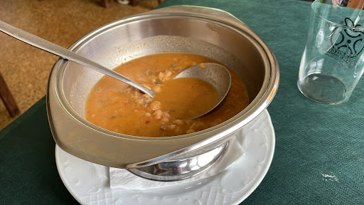 Read moreUna de las peores experiencias que he tenido comiendo, contrasta con las innumerables reseñas positivas que tiene, en un dia frio y comiendo en terraza por el covid pedimos sopa la cual en vez de fideos tenia pasta para fidegua pasada, no estaba hecha al momento si no que ya llevava con el fideo cocido de primera hora del dia, de segundo carne, cabrito al horno y carne guisada, en los dos casos la carne no era hecha del dia si no que estaba recalentada y recalentada de dias atras seca y dura y el guiso tremendamente especiado cosa que da que pensar y que horas despues lo reflejo el estado de mi estomago. Despues de pasar dos horas de reloj al fresco (14:30-16:30) ya que pese a tener solo 15 o 20 comensales parecia que de nosotros se habian olvidado solicitamos la cuenta hasta tres ocasiones y con solo una mesa que atender más que la nuestra, pues 20 minutos despues no solo no piden disculpas si no que todavia tienen más que decir. Para mi experiencia unos impresentables, no se lo recomendaré a nadie, una lástima por que despues se quejan los hosteleros de la situación que estan pasando por el covid y hay algunos que parece que invitan a no volver a...