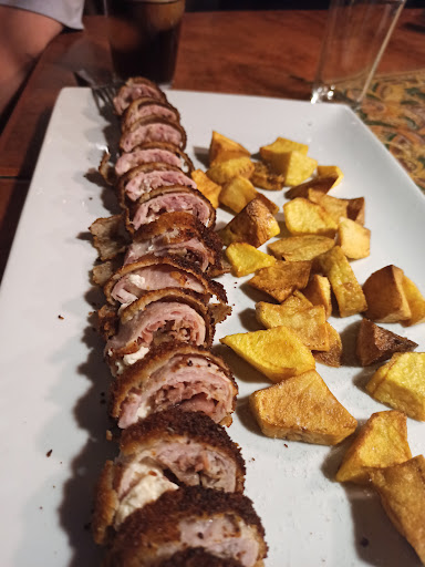 La calidad de la comida es muy buena, nos pusieron un flamenquín de ternera con queso de cabra y cebolla caramelizada muy rica.
