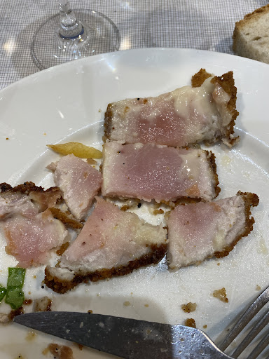 Read moreLa comida puede ser muy buena, pero la educación luce por su ausencia. Igual entras a mesa tras esperar un buen rato porque no te respetan turno y comes de mala hostia con el trato que te dan. Nada recomendable si te gusta comer a gusto, no todo es el sabor del plato, más cuando te deja mal sabor de boca. Bueno, acabamos de dejar el restaurante tras una nueva falta de respeto aún mayor y exigirnos que esperáramos una hora a que acabara el servicio para darnos una hoja de reclamaciones sin garantías de tenerla pasada esa hora y teniendo nosotros obligación ninguna de esperar. Aparte, veíamos que si esperábamos esa hora, la cosa iba a ir a más y nosotros de un principio no queríamos problema ninguno, solo comer y seguir nuestra ruta de senderismo. Se nos ha recriminado que fueramos al bar de al lado, cuando siendo 3, me he quedado yo solo en su propio bar para que no nos corriera turno y aún así nos ha corrido turno no una, sino 2 veces. Encima la carne del segundo plato estaba cruda, la de los 3 platos, añado una foto...