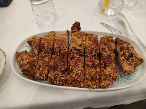 Pedimos para compartir croquetas de la abuela, que estaban bastante sabrosas y cremosas, y las almejas al carril, que estaban buenísimas. Como plato principal, pedimos solomillo de cerdo y para acabar, un tiramisú. Todo muy bueno.