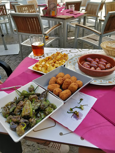 Read moreSituado en la calle de los vinos de Lugo. Sitio acogedor, de forma alargada y con una terraza en la parte de atrás que da al museo provincial. Comimos unos calamares y falafel. Los calamares a la romana pasables y el falafel, muy lejos de lo que para mi es una buena elaboración. Eran planos, cosa que contribuía a que hubiera un exceso de aceite. Le faltaba masa y no se apreciaba sabor ni a garbanzo, ni el frescor de perejil o cilantro. No me gustó. Eso si, la atención fue exquisita. Muy atenta con nosotros. Ubicación perfecta en la zona vieja de Lugo. Con muchas cosas interesantes cerca. El precio fue razonable tirando a alto por establecer una correlación entre calidad precio. Eso si, como buen local de Luego, pincho con la consumición. Después de todo esto, no lo recomiendo obra comer pero si para tomar algo...
