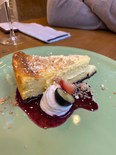De postre elegí bizcocho de miel y limón. Y tengo que decir que la presentación del plato era vistosa, pero poco más. El bizcocho estaba seco y hasta algo duro. Es una verdadera lástima de nuevo, ya que en la localidad en cualquier cafeteria/panadería te ponen de tapa con el café un par de pedazos de bizcocho como los de la foto, pero no tan secos.