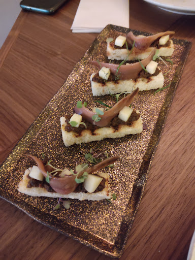 O aperitivo foi delicioso (táboa de queixos galegos, croquetas de churrasco, zamburiñas á brasa, bao de gambas e gilda con emulsión de piparra -especialmente fresca e deliciosa-). O xardín é ideal, con olores suaves que te envolven e detalles que fan moi agradable a estancia nel.