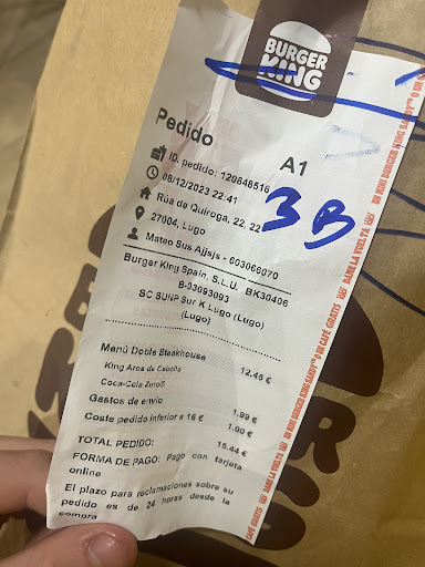 Read moreEsto es expresamente por el delivery de la Av, Madrid de Lugo y por si alguien necesita esta información, que yo conocí hoy luego de "invertir" el tiempo necesario para realizar un pedido familiar (abrir una cuenta dirección, confirma cuenta, el pedido como tal, etc) Elijo el pago en domicilio, y me llaman desde el Burger a decirme que si el pago es en efectivo solo me lo pueden entregar después de las 19hrs. Evidentemente mi pedido era para evitarme el tedio de la cocina, por ende, lo quería para la comida y no para la cena. La persona que me llamó, no fue amable pero fue correcta , le hice saber del tiempo que he perdido eligiendo la comida de 5 personas y solo atinó a responder que ellos ya avisaron a los superiores para que añadan esta información en la web porque a ellos también les molesta tener que llamar a los clientes a cancelarle pedidos. Así que...