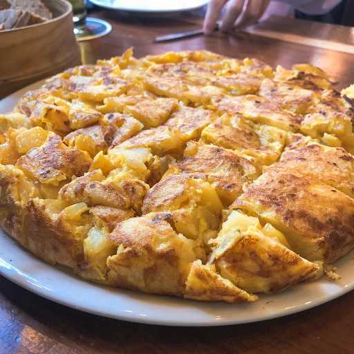 Tortilla grande: Me encantó, bien de sal, toque guay de cebolla, quizás el punto no era el ideal para compartir, pero a mí me fascina así. 8/10 Raxo (con patatas y pimientos): No es el clásico en taquitos si no en filetes, en la zona de Lugo lo hacen así, lo prefiero de la primera manera. Bien de sazón, pero me recordó mucho al lomo de catering. Las patatas me encantaron tanto la forma como la fritura, y los pimientos estaban asados, muy ricos también. Aún así, no repetiría este plato. 6/10 Tarta de queso al horno: ideal, me encantó el punto de cremosidad, me gustó mucho que la confitura venga a parte, porque me gusta más la tarta por sí sola, aún así, la confitura estaba riquísima. Por decir algo, me faltó más de sabor a...