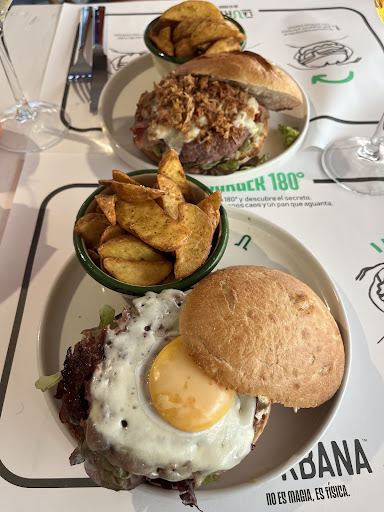 Wow, this is not your normal burger place. They serve really innovative burgers that taste excellent. In the Country burger they separate the egg whites and the yolks and then cook separately. You get a runny yolk in the exact center of the burger. Yum. The Piedmont came with blue cheese. They cook the burger patties perfectly. The desserts are also tasty and innovative. The staff were helpful and gave us a table just before opening at 8pm. We looked at the menu through the website to get a translation and that really helped with the ordering. There is nice updates tables and a ground floor bar area. The kitchen is only open during normal Spanish eating hours so you can’t get a burger at anytime even though the bar is...