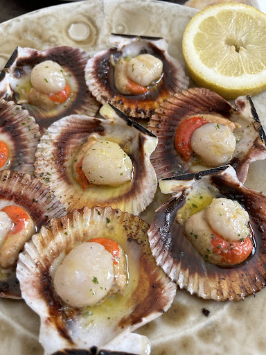 Raciones MUY escasas. Calamares fríos, demasiado duros. Croquetas "caseras" lo único caliente entre los primeros. CUIDADO con el pulpo, te intentan estafar, pides una ración (que por cierto estaba frío y pasado, parecía chicle) y resulta que son 2 raciones por qué el plato "era de 2 raciones". Ni siquiera trae patatas, y el plato excesivamente pequeño, aún con más razón si son 2 raciones, apenas una ración parecía. Las raciones de churrasco pequeñas y aún encima quemado y bien carbonizado, patatas casi inexistentes, ensalada si tienes suerte y te llega a la mesa (en mi caso lo traían cuando íbamos a pagar).