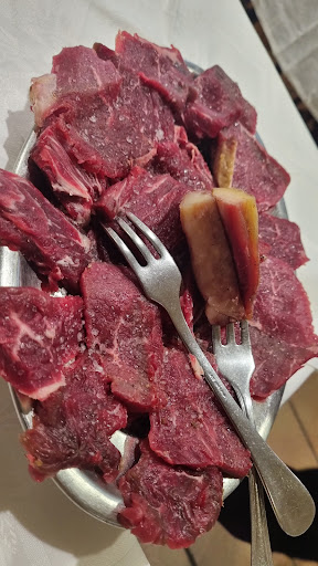 Read moreÉramos tres y pedimos sopa de pescado, que estaba muy aguada y tenía poco sabor. El bacalao a la brasa, que cuesta 18 euros, tenía buena pinta pero estaba muy insípido porque lo desalaron tanto que no sabía a nada. Una pena. Para mí pedí media ración de churrasco de ternera, en la que venían tres piezas, la más grande era pura grasa y estaba cruda, por lo que no me la pude comer; las otras dos estaban tan quemadas que no sabían bien. El criollo sí estaba bueno, aunque una parte también estaba bastante quemada. El postre es casero, pero no entiendo por qué también estaba tan insípido: pedimos para compartir los tres una tarta de queso que estaba además bastante seca y dos cañas (solo nos pusieron dos para los tres) rellenas de una crema blanca que en nada se parecía a la típica crema pastelera, y que tenían un hojaldre grueso que sabía a aceite frito. Pagamos por todo 76 euros. No es un sitio al que volvería, aunque he de destacar que el camarero fue muy amable y atento. Pero no vamos a volver y menos teniendo opciones mucho mejores en...