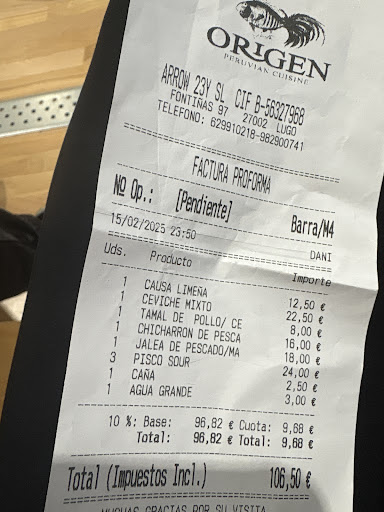 Lamentable. Reservamos aquí para pasar una noche agradable entre amigos, y fue un fracaso por parte del restaurante. Para empezar , tardaron en traernos nuestras bebidas una eternidad, pedimos unos cócteles típicos peruanos, que nos sirvieron en unas “copitas”de zumos de la marca PAGO malísima presentación, tamaño y venían sin hielo, por esto te cobran 9 eurazos,, por no hablar que tardaron más de 20 minutos en servirlo. Después pedimos los primeros , ceviche, tamal y causa limeña, muy flojos de sabor. El colofón final fue con los segundos, dos de los comensales no cenaron porque sus platos no llegaron nunca, y los que tuvimos la suerte de poder probar , nos pusieron un pescado rebozado frito grasoso e insípido, que comimos ya frío, esperando a que nuestras parejas recibiesen sus platos. Resumen, pagamos 106 euros por no comer. Una estafa. La camarera nos atendió bien, y nos ofreció llevar los platos que no habían llegado sin costo, pero ya nos chafó la noche que habíamos planeado...