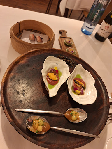 Read moreÍbamos con la expectativa de una gran experiencia gastronómica y hemos salido con la típica experiencia de turistas sableados (y sin tan siquiera ser turistas) Hemos ido a comer dos parejas. La comida ha ido de más a menos. Los aperitivos muy bien, los primeros (salpicón de bogavante y una especie de tataki de atún) bien sin más y los platos principales (chuletón y lubina) regular, sin que la supuesta calidad del producto se hiciera notar.ñ en absoluto. Además habíamos pedido alcachofas con virutas de jamón y lo que nos trajeron en su lugar fueron alcachofas guisadas con setas. El argumento, que no disculpa, del camarero fue básicamente que habían decidido hacerlas así porque lo que habíamos pedido nosotros aunque seguía en carta ya no lo hacían. A pesar de que le insistimos en que no era lo que queríamos, no hizo ni ademán de cambiarlas ni de descontarlas en la cuenta…bastante feo eso. No tomamos postre pero si pedimos dos copas de vino dulce, donde nos ofreció varias opciones sin darnos en ningún momento el precio. Pues bien, elegimos el Tokaji por el que nos pasaron 25 euros por copa…tambien creo que es feo, esto deberian de avisarlo. En definitiva, la comida sin estar mal del todo, desde luego se queda lejos de lo que pretenden vender. Es más, en casi cualquier restaurante de Lugo encuentras comida de calidad igual o superior y a un precio mucho más adecuado. Desde luego,...