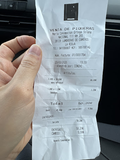 Read morePrimer dia de vacaciones, llegamos a las 14.00, nos sentamos en terraza, y nos dijeron que si nos atendían fuera,nos cobraban 2,5€ por cada uno de los 4 que eramos, de atendernos fuera, y eso que hay la misma distancia a nuestra mesa que al segundo comedor. Si no quieres pagar esa cantidad, vas tú a la barra, te pones la mesa y te sirves y retiras tu los platos. Si no quieres pagar esa cantidad ten paciencia para que te atiendan. Era fin de semana y ya saben de sobra que se les llena, mas a finales de julio, aún así, solo 2 camareras en mesas, para unos 70 comensales mínimo, y otra persona entre la barra para servir a los "autoservicios' que éramos muchos, y preparar platos en cocina. Las albóndigas en salsa de boletus no valen nada, no son caseras y los boletus hay que buscarlos. La ensaladilla rusa tampoco nos gustó. Las migas estaban buenas. El pisto bien de sabor, pero los trozos de verdura muy grandes y la salsa de tomate algo aguada. No te dejan pedir medio menú, aunque tengas poco hambre, o tus hijos sean mayores de 11 años. Obligado 22€ más bebida y café por persona, no hay carta para pedir lo que quieras, si o si menú. Estaremos 10 días en la zona y no...