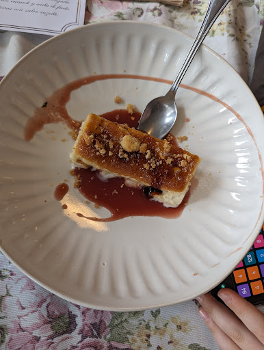 Read moreUna comida en ruta y descubrimos un restaurante cuidado con elaboraciones cuidadas. Tomamos de primero garbanzos guisados con gambones y crèpe de setas, gulas y gambas. Los garbanzos tenían mucho sabor y estaban en su punto. El crèpe estaba muy suave acompañado de crema de marisco. De segundo tomamos escalopines de solomillo y pimientos rellenos. Los escalopines muy tiernos con la salsa de queso Valdeón y los pimientos jugosos y bien acompañados. De postre crèpe de mousse de castañas ( muy suave y nada empalagoso) y bizcocho cremoso de nata, que estaba espectacular. El café muy bueno, de pota con invitación a chupito, que por estar de viaje, declinamos. La atención maravillosa, el sitio muy bonito con mucho gusto y donde pensamos volver, en otra ruta para pasar un ratito en el patio que tienen. Un menú de fin de semana con una gran variedad y una atención de 10. ¡De...