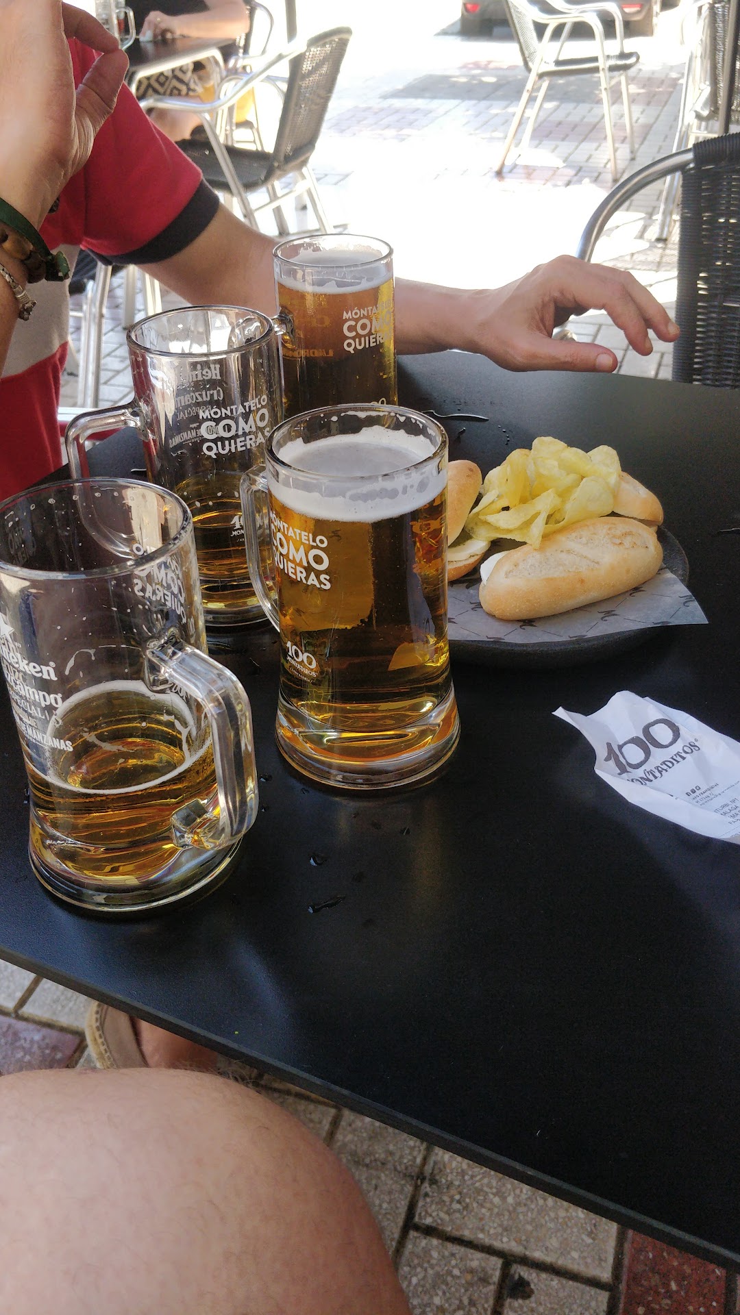 Read moreA las 11 menos 3 min viene un mala cara a decir que era última ronda, me acerco a la barra para pedir tras más de 10 min esperando pido 4 cervezas llego a la mesa y me faltaba 1 porque conté mal la verdad.. Me acerco a la barra y me dicen que ya se ha pasado la hora pero con cara agria.. Le pido un poco de compresión ante la situación ya que había tardado 30 seg en ir a la mesa y que no le estaba pidiendo un arroz caldoso.. Que era una caña... Total que me he quedado sin la caña aunque accedió a ponérmela El mala cara ya mencionado anteriormente la verdad es que ya no la quería. Os pongo 5 estrellas por la guasa pero la verdad dudo que vuelva hay que intentar que la gente se vaya contenta de los sitios con pequeños detalles. Que estamos en Málaga y eran las 11 y 8 min, por cierto a las 11 y media recogiendo la terraza y a las 12 todo el mundo fuera ni se pudieron terminar la caña mis amigos ni yo porque a mi ni me la...