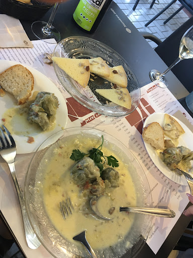 We ate Alfachofa en flo (flower of an artichoke), croquettas sepia (cuttlefish croquettes), huevos rotos con gambas (slightly spicy shrimps with some potatoes and fried eggs) and mango salad. Additionally, there was some bread given to us, however, later it appeared on a bill 1.5 EUR. We drank a nice non-alcoholic...