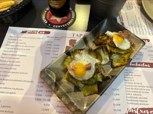 Read moreExperiencia horrible. De primeras el trato no fue totalmente correcto, no nos dió tiempo ni de decidirnos por la comida que queríamos, ya que el camarero incluso en 3 ocasiones se presentó en la mesa a la voz de ¿Lo sabeis ya? Todo esto en unos escasos 5 minutos (parece que tenia prisa en terminar con nosotros lo antes posible), Lo lógico sería que esperara a que nos decidieramos y después lo llamaramos ¿No?. Los precios son caros, ya que se supone que hay variedad de tapas y solo hay 4-5 tapas, no más. Me pedí una brocheta de gambones, lastima que no les hiciera una foto ya que eran de pena, había 3 y solo me comí 1 y medio, lo otro se lo di a mi pareja que le gustó mucho menos. Otro de los platos que pedimos y cito lo que ponía en la carta : Huevos rotos con gulas. (Ala.. pinta maravillosa!!) ¿Cuál fue nuestra sorpresa? TODO estaba impregnado por un pimentón con sabor a chorizo (sin especificarlo en carta) a quien le guste... Muy bien, pero hay a muchas personas que el olor, y mucho más el sabor resulta desagradable, no es el típico jamón que el 90% de las personas les gusta, se trata de un alimento que a muchas personas no les agrada (fue nuestro caso). Al pedir la cuenta con el plato prácticamente sin haberlo tocado, nos preguntó que si no nos había gustado, y mi pareja le dijo que no por el pimentón con sabor a chorizo, y el le dijo que para la próxima vez: "todos los huevos rotos llevan ese pimentón" FALSO. La mayoría de sitios a los que voy a comer pido huevos rotos y JAMÁS me han puesto pimentón, y si lo ponen, viene recalcado en carta. Nos da la cuenta: 3 tapas(de pura pena)y un plato(sin tocar prácticamente) 22'80, y nos dice.... Lo que puedo hacer es poneroslo para que se lo llevéis.. ¿Perdona? ¿Donde esta la lógica? Si estaba sin tocar porque no nos había gustado! Y para colmo se pone a cuchichear con el otro camarero. NUNCA volveré a...