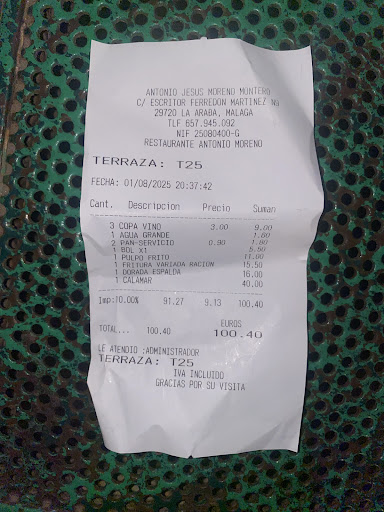 Read moreEaster Sunday lunch with family. The decor is simple with a fantastic vista.The menu is only in Spanish but the staff are happy to recommend. This is primarily a fish restaurant but my daughters had the chicken skewer and the entrecôte which were both delicious and well cooked. I would recommend the gambas cocidas de Malaga and the zamburiñads to start followed by the recommended pescado al pesco. The bill for 4 came to €160 which included starters , mains , desert, coffee, bottle of wine plus water and minerals. The restaurant is 15mins in a taxi from the centre of Malaga. This is our second visit to this fantastic family restaurant and we’ll...