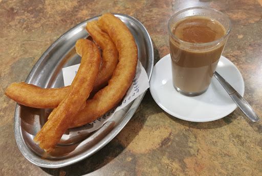 Read moreHad churros without sauce, and coffee with milk half and half for 2,90€. Very fresh crispy airy churros. Good value for the quality of food and service. Nice neighborhood cafe/churrerio atmosphere. Reminded me of my Chinese home food called youtiao, as in the extra photo posted here, usually soaked in soya drink (sweet or savoury) or congee. Looks like churros not available...