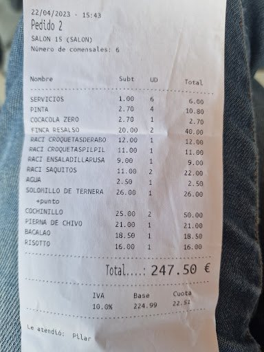 Read more30/12/2022 Vinimos a almorzar. Probamos: Canelones de rabo de toro: Ligeramente dulces y con la pasta un poco dura. Croquetas de cocido: estaban bien. Crujientes por fuera pero no especialmente cremosas. -Codillo. Tierno y de sabor suave.