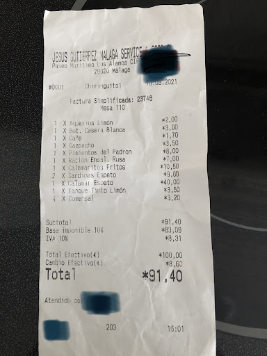 Read moreLamentable experiencia, es comprensible que en pleno mes de agosto en Málaga, el servicio no se el mejor. Pero que pena que mal hemos cenado, una lastima porque el pescado era fresco pero mira que hay que ser malo para estropearlo de esa manera. Las sardinas de los espetos eran muy buenas pero muy mal hechas, unas muy quemadas y otras totalmente crudas. Los calamares fritos... bueno eso era una amasijo deforme que si te fijabas bien con un poco de suerte a lo mejor distinguías una parte de calamar. Y para rematar con el pulpo frito me entraron ganas de llorar, nos sirvieron todos los recortes del pulpo, en todo un plato distinguimos solo tres trozos de pata, estaba tan aceitoso que cuando inclinamos un poco el plato se formo una balsa de aceite que empezó a gotear sobre el mantel. Muchas gracias por arruinar lo que pretendía ser una noche magnifica a la orilla del mar. Vergüenza os tenia que dar ser malagueños y servir...