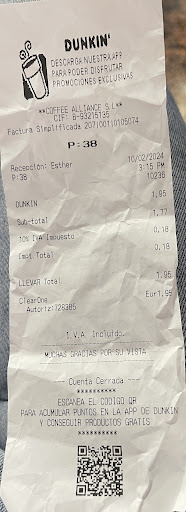 Yo como fan de los Donuts de Dunkin’ Donuts seguiré yendo a los establecimientos pero este desde luego que no volveré a ir.