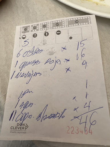 Read moreBar near the back entrance into the open market, specialized for seafood, prices look very fair. Simply speaking, we expected more. Gazpacho was awful. Mussels, firstly we were told there is no more, after that they appear but tasted bad and looked even worse, probably the ones which were eliminated in a normal service. In a moment I was wondering should we taste them or not, but we decided to gamble. Fortunately, nothing bad happened to us. Galician style octopus was eatable, pretty tender pieces in a kind of tomato dressing but the taste is fare away from excellent. One of us was not fond of seafood and took pork cheeks, they were very good. The best meal was shrimps in tagine, almost delicious. As a gastronomic experience it was interesting, but I guess that there is a lot of places with more delicious food for approximately same prices (the bill for three persons...