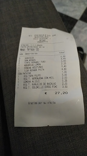 Read moreComimos allí un sábado y a pesar de que como siempre hay cola pero fue muy fluido y no tardamos mucho en sentarnos. La comida le doy esa valoración porque pedimos berenjenas con miel de caña y bueno la berenjena estaba muy frita y muy desecha, muchos trocitos pequeños que parecían mas restos de pan rallado echo bolitas y no berenjenas. Luego las gambas al PILPIL estaban buenas y con el toque justo de picante, es cierto que las gambas eran grandecitas pero algo durillas y para el precio que tienen creo que venia poca cantidad. Luego pedí unas sardinas a la plancha y me dijeron que eran 7 unidades y cuando trajeron el plato venían solo 5 y el comentario que me hicieron fue que eran mas grande de lo normal, creo que fue para que no reclamara las que faltaban, pero vamos que si tienen una cantidad en el plato no debería influir en el tamaño, si son 7 unidades da igual el tamaño pero bueno tampoco quise reclamar nada porque vi que no merecía la pena. Si es cierto que el pulpo estaba muy bueno aunque algo duro y un poco crudo y los trozos algo grandes que en mi caso fui con mi sobrina de 9 años que le encanta y le tuve que partir los trozos. El servicio fue bueno y la atención bastante bien la verdad. Destacar también que los boquerones al limón estaban bastante buenos y fritos perfectos. Los buchones me decepcionaron porque por media ración pusieron 4 trozos pequeños, además yo los buchones recuerdo que son trozos de rosada en adobo y fritos y lo que me pusieron fue los 4 trozos en rodajas y la verdad que el aliño no estaba por ningún sitio. Las lagrimitas de pollo también estaban bastante buenas y muy tierno el pollo. Volvería de nuevo...