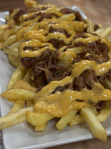 Read morePuedo decir que tanto el camarero como la chica de la barra son unos profesionales pero vi entrar en la cocina a 6 personas ajenas al restaurante y la cocinera le dijo a la camarera textualmente “estas patatas que van a salir ahora son para mi tío” Yo soy de pedir bien de patatas pero al ver que costaban 6,50 pensé que me traería una sartén llena. Me trajo las patatas más pobres que he visto en mi vida. La salsa de bote y conté 17 minúsculos trocitos de carne. Yo creo que compran todo en el super de al lado. Error mío pensar que me traerían el plato de patatas igual que el de el tío de la cocinera. Pedí un campero de 6,50 El pan estaba mal abierto, el pollo estaba seco, la rodaja de tomate más fina que he comido nunca, la mayonesa parecía agua, el”huevo” era literalmente un huevo revuelto,el bacon estaba frío… Van de que es son hamburguesería de barrio y los precios están desorbitados tanto por calidad como de cantidad. Sin hablar del ambiente que hay montado por parte de los conocidos del personal, son gente herbolaria que me hizo sentir incómodo con el percal que tenían montado en sus mesas, gente hablando excesivamente alto o diciendo groserías son unas de las muchas cosas que hacen que no vuelva a ir a esa hamburguesería ni a usar el baño. Recalco la buena atención por parte de los camareros y lo poco higiénico que me pareció ver que tanta gente entre a la cocina a “saludar” supongo. Y si le pones el nombre de tu restaurante a un campero mínimo...