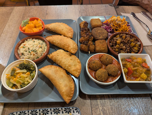 Read moreI recently came here with parents who are lacto vegetarians (no egg) so this was a great place with so many options. the owner was happy to tell me what had egg in and what didn't. The people were friendly and welcoming. We weren't super hungry but ordered enough to between us so we could try a selection of dish's. I highly recommend the spicy mushroom, i would have happily just had this with some bread. We ordered 2 platter with a selection of croquettes and pastries. Eat the pastries while they are warm so you get the oozy cheese. i couldn't tell the difference in the fillings except the spinach one but they tasted nice. I did however take some home as we couldn't finish the food and the following day it tasted greasy. the different croquettes were lovely, seemed like they were more lentil based which is nice rather than fake meat. Once again the few i took away seems greasy the following day. i loved the selection of sides. personal favourite was the sweet potato, i wasn't a fan of the cous cous Overall loved the atmosphere...