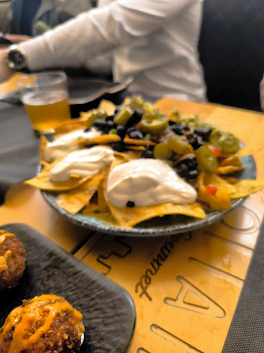 También pedimos nachos para compartir. La ración era abundante, lo cual se agradece, pero los totopos eran claramente industriales, muy similares a los de bolsa que se pueden encontrar en grandes superficies como Costco. Esto contrasta con otras hamburgueserías como Hundred Burgers, en Valencia, donde los nachos son caseros y los totopos tienen un sabor y una textura inconfundibles. De hecho, Hundred ha sido reconocida como la mejor hamburguesería del mundo en 2024 por la guía The World's Best Burgers, y se nota en cada detalle, desde la carne madurada hasta los acompañamientos.