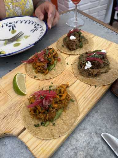Read moreBueno creía que sería bueno probar y no,pedí 4 veces aceituna y al final pagué sin poner aceituna, el servicio era muy malo pedimos guacamole con torreznos y no vimos los torreznos, una imitación del que hace Dani García se nos acabo las dipas y lo pedimos 4 veces y se lo dije al camarero,no te explican nada de lo que te ponen, pedimos una especie de taco con una base de sal com maíz y el taco encima se nos llenó de sal vamos fatal, los taco chicos no lo siguiente no entendimos que fusión taco y maíz sin hacer y sal, se lo comenté al camarero lo que había pasado y su respuesta fue todavía estamos esperando, pedimos un vino y no entendían de vino,nos pusieron la cubitera en un silla espectacular de fino y la mazorca fatal no sabía ni a mazorca llevaba un salsa que no sabía nada, porque no te explican nada, bueno y la costilla no la vendieron como una pasada, la de Mercadona está más buena y barata dos hueso con unas patatas baby dos patatas, bueno ya el postre lo tengo que decir, espuma de naranja con base de bizcocho servido en una cacerola pequeña, era todo espuma y el bizcocho no lo vimos, la tarta de queso con pistachos no lo voy a comentar, para comer el postre nos pusieron cuchara para la sopa, en definitiva el sitio bonito servicio muy malo en general y la comida muy escasa y precio muy caros, hemos comido en mejicanos auténtico y lo que me gasté allí 4 persona adultas 162€ estaría malo y no comimos nada del otro mundo, y la carta escasa no vi mejicano por ningún lado y ninguna fusión, para ser varios cocineros y muy mal tal como pedimos la cuenta varias veces y me dijo el camarero que la cuenta lo hacía el cocinero, imagine que sería una nueva fusión cocinero cobrador los camareros hablando entre ellos los cocineros hablando,no creo que duren mucho asi, en fin la peor cena que hemos estado espero que dureis mucho aunque lo...
