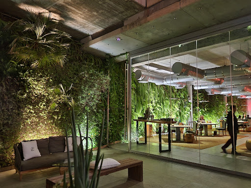 Atmosphere The location of the restaurant is great and the overall layout of the restaurant is nice and spacious. However, while one side has a nice mix of jungle and industrial wibes, the other is next to some old shelves that look like they were found on the street as well as some unmarked doors. Definitely doing a disservice to the otherwise nice design.