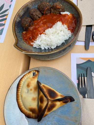 Descubrimiento inesperado. Este restaurante vegano lo encontramos de casualidad y decidimos probarlo. Éramos 3 y nos pedimos de entrantes unas albóndigas de soja con arroz y salsa filete, una empanada de espinacas y una de No Pollo Thai. Las albóndigas muy ricas, pero quizás es mejor acompañarlas con un puré que con arroz. Entre la La empanada de espinacas y la No Pollo nos quedamos con la segunda, que estaba tremenda.