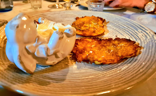 I live in Barcelona and eat excellent food on a regular basis, but the dining experience I had here is one of the best I’ve had in a very long time. The service was a breath of fresh air as the owner was absolutely attentive, kind, informative and helpful. He seemed genuinely happy to move between the three tables of the restaurant to help everyone make the most out of their respective meals. With only three tables, the entire experience is like having a lovely family dinner with people you don’t know. Everything we ordered was excellent, but of course, the smoked fish was the star. The flavor was so delicate and the preparation with a shot of vodka was such a memorable touch. The flamequin and potato pancakes were also flavorful and nicely prepared. The price point is excellent given the quality of the cuisine. I will always seek this restaurant out...