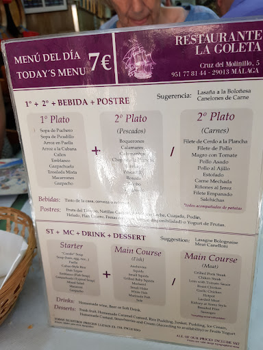I was encouraged to have lunch by senior citizen outside the door. I presume it is a family restaurant. Fantastic Menu Del Dia for 7 euros which consisted of three courses and a glass of red wine. This was said to be home made but I'm unsure about this. This gives the appearance of a traditional Malaga restaurant and I loved it. I had paella for starters followed by excellent sardines and homemade custard for desert....