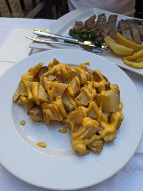 Great for the ambiance, sitting across the plaza from the cathedral, the wine and the french fries that came with our meal were good. Also the servers were nice. Everything else about the food was very poor to bad.