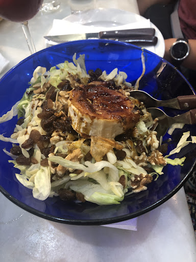 We had to bring our own chairs next to a table, which was not set up (on a Wednesday night). First, we were served very flat beer. We decided to switch to wine - and had the house glass which was ok. We were then told that in order to be on the terrace we needed to order a minimum of 6 canapés in addition to our meal. We decided to go for it even though not that hungry because we wanted to enjoy different flavors. We have a strong accent in spanish and we spoke in french to eachother most of the time with the occasional english sentence as we are from Montreal.