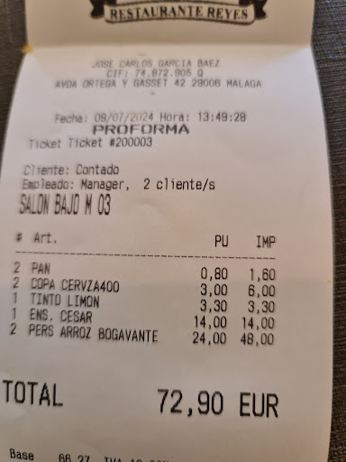 Read moreLamentablemente, mi visita a Restaurante Los Reyes en Málaga fue una de las peores experiencias gastronómicas que he tenido. Desde el inicio, el trato del personal fue muy deficiente.