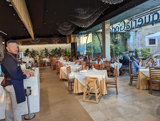 Very bad experience due to rude and inhospitable personnel. Despite having plenty of free unreserved tables (would say place was empty compared to Amigos Muelle Uno for example) did not managed to get a right size table. Asked for a table of 5, and instead of geting one of the 6 places table, got a single option of a table that was increased from 4 to 5 seats. As it was to small for us, with little space beside the 5 default plates. Were told that tables are based on people count, and if we fo not like the one table to just leave. Took some pictures to show how was the state of tables for a review, and personnel almost kicked us on our way out while yelling. Attached are the 2 pictures with the customer faces obfuscated for privacy reasons .As it can be seen no table was full like we were asked too. As for the food, i can not have any opinion about this restaurant other that is unsafe to have fish and other sea products laying inside in an open tray with no ice on them.. As for the atmosphere, it can't match other restaurants nearby that were full will people, so I believe this restaurant is not so popular as they...