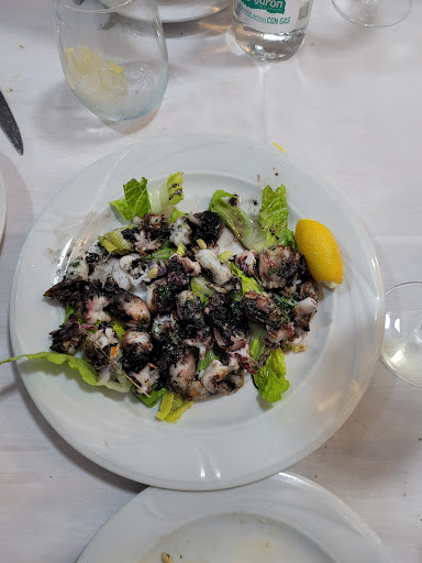 Amplia oferta en mariscos y pescados la que nos ofrece esta marisquería enclavada en calle Pelayo. Cuenta con un par de mesas altas en la puerta y un interior pequeño, así que hay que acudir pronto para coger sitio. Me acerqué para cenar y me acomodaron en una mesa que aparentemente estaba reservada, pero me hicieron el favor de acoplarme en ella. La comanda fue dos conchas finas, dos tostas con anchoa del Cantábrico, una peregrina rellena, un calamar relleno y media ración de marmitako de atún, éstos dos últimos platos fuera de carta. Para beber, dos cañas, y un chupito cortesía de la casa. Toda la comida estuvo muy buena, no puedo destacar nada, ya que toda estuvo a un gran nivel. La sorpresa llegó con la cuenta: 36 € para un comensal, de los que 15 correspondían al calamar relleno. Éste es el gran peligro de pedir platos fuera de carta; el calamar estaba buenísimo, pero era pequeño, venía cortado y eran solo siete trocitos (ver foto), lo único que se me ocurre es que fuera fresco, pero aun así ese plato no puede costar ni de lejos 15 €. Había pensado bajarle mucho la puntuación por este detalle, pero la calidad de la comida y, por encima de todo, la sobresaliente atención del camarero, un chico joven, me han convencido para restarle...