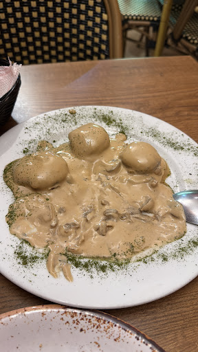 Read moreCarne buena, pero platos pobres y con poca guarnición. Pides un solomillo de 24€ con “patatas a lo pobre” y viene un trocito de solomillo con 6 rodajas de patata (literalmente) , una gran bola de algún tipo de ensalada con alguna salsa y un gran pegote de alioli , lo cual no te preguntan si quieres (a mi concretamente no me gusta), pero rellena el plato. 6 croquetas 8,50€, tarta diminuta de postre (era bizcocho de chocolate de calidad baja) por 5€/ ud. Te ponen el pegote de alioli y la masa de ensalada extraña , pero luego la salsa pimienta te la cobran a 3€ aparte. Cobran el cubierto a 0,80€. En general, bastante caro, no repetiré. Nos costó casi 70€ el almuerzo. Mucho ruido en el interior del establecimiento, puerta abierta y mucha corriente de aire. Camareros gritando las comandas … no fue un almuerzo...