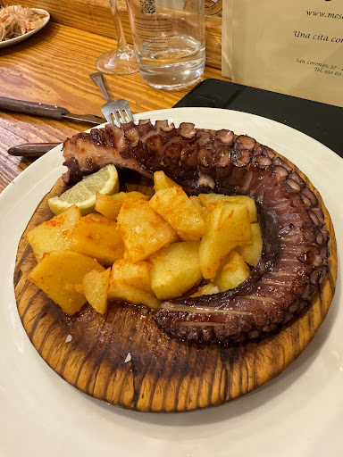 Read moreAmong the tapas bars we visited, this place had an outstanding atmosphere, reminiscent of what you see in videos. The waiters were pleasant and kind. Our overall experience was positive. Arriving around 2:30-3pm, we found the place full. We were given a buzzer to alert us when a table became available. While waiting outside, we placed our order. Once seated inside, our food arrived promptly. We ordered three dishes: Malaga prawns: These were disappointing. For nearly 30€, we received 250 grams (with shells), equating to 14 shrimp-sized prawns. They were simply boiled and unremarkable in taste. Grilled lamb chops: Recommended by the waiter, these had an overpowering meaty taste. The meat on each chop was sparse, no more than half a small matchbox in volume. The fries that came with it on the other hand were super tasty. Overall it is not worth the price. Grilled octopus: This was exceptional - one of the best we've had. The accompanying golden potatoes dressed in olive oil were perfect. Our bill totaled 75€, which seemed high for the portion sizes. However, the excellent atmosphere, service, and the outstanding octopus dish...