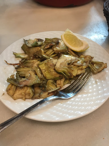 Wow. An excellent place to come for a few tapas! I scrupulously researched this establishment ahead of time as there are SO MANY restaurants here that are listed as 4+ stars that have no business being so! This one absolutely rates at the top of all my required categories! VALUE - For the best value, come during late lunch (check hours) and sit up at the bar to order off what I would consider the ‘bar menu’. We ordered four tapas plates, 1/2 size, we both had two drinks each and a cappucino and the bill was only €32.30. QUALITY- The food was excellent, flavors were well planned for each dish and delicious.The ingredients were top quality, fresh and freshly prepared, served promptly and hot. They are known for their artichoke dishes and we had the grilled option which was excellent! Skewered goat and the young lamb were also amazing and yet totally different dishes; one in a savory garlic sautée and the other right off the charcoals served with freshly cut potato fries. I also finally had some eggplant served in what seems to be the traditional fried manner that was light, savory and with the honey sauce that is such a nice touch. It must be a local specialty. There were so many things we wanted to try, such as the oxtail stew and something that looked like a hearty stew of chickpeas, pork shoulder and vegetables and several other dishes - not enough time! AMBIENCE/SERVICE - This is a very cultured, yet cozy establishement. I felt like I was in a five star restaurant but I also felt at home and cozy with the friendly wait staff and casual yet elegant service. The restaurant itself reminds me of being in an old, yet well preserved historical building. So fun! We squashed into a couple of seats at the bar because I had read that sitting at the low tables you would be ordering off of the dinner menu - a bit pricier and more food than we wanted. The servers were all so nice. When we saw some beautiful lamb shanks being brought to someone’s table, one of the waiters (not even ours), saw us admiring them and went out of his way to show us where they were found on the menu since he could see that we did not speak Spanish. The owner was also right in there with everyone. Prepping this and that at that bar and generally keeping an eye on whatever might need doing. I noticed he checked on everyone in a very unobtrusive way, silently removing plates, replacing silverware or refilling drinks in a seamless continuum that you hardly noticed. What a great experience! I look forward...