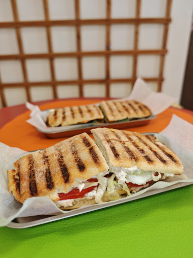 Diría que este bocadillo veegie es el más rico que he probado con berenjena asada, romero, salsa Muhammara (pimientos asados, nueces, ajo y limón), queso fundido y albahaca